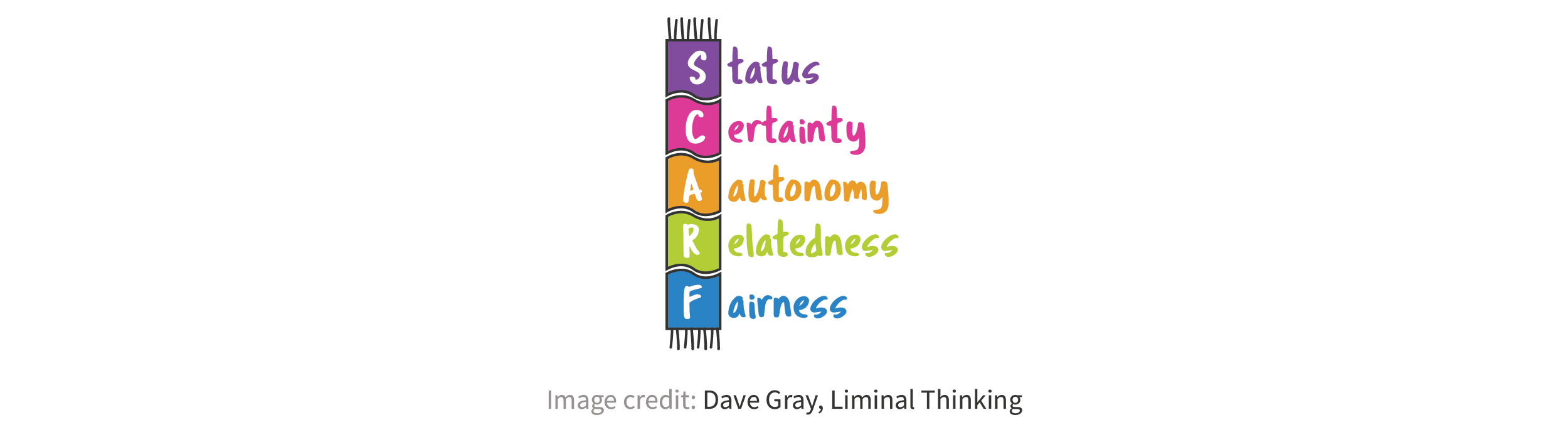 SCARF Model. The SCARF Model provides a checklist of needs to meet when you’re trying to understand where other people are coming from and to create a safe space for them. Questions to ask include: